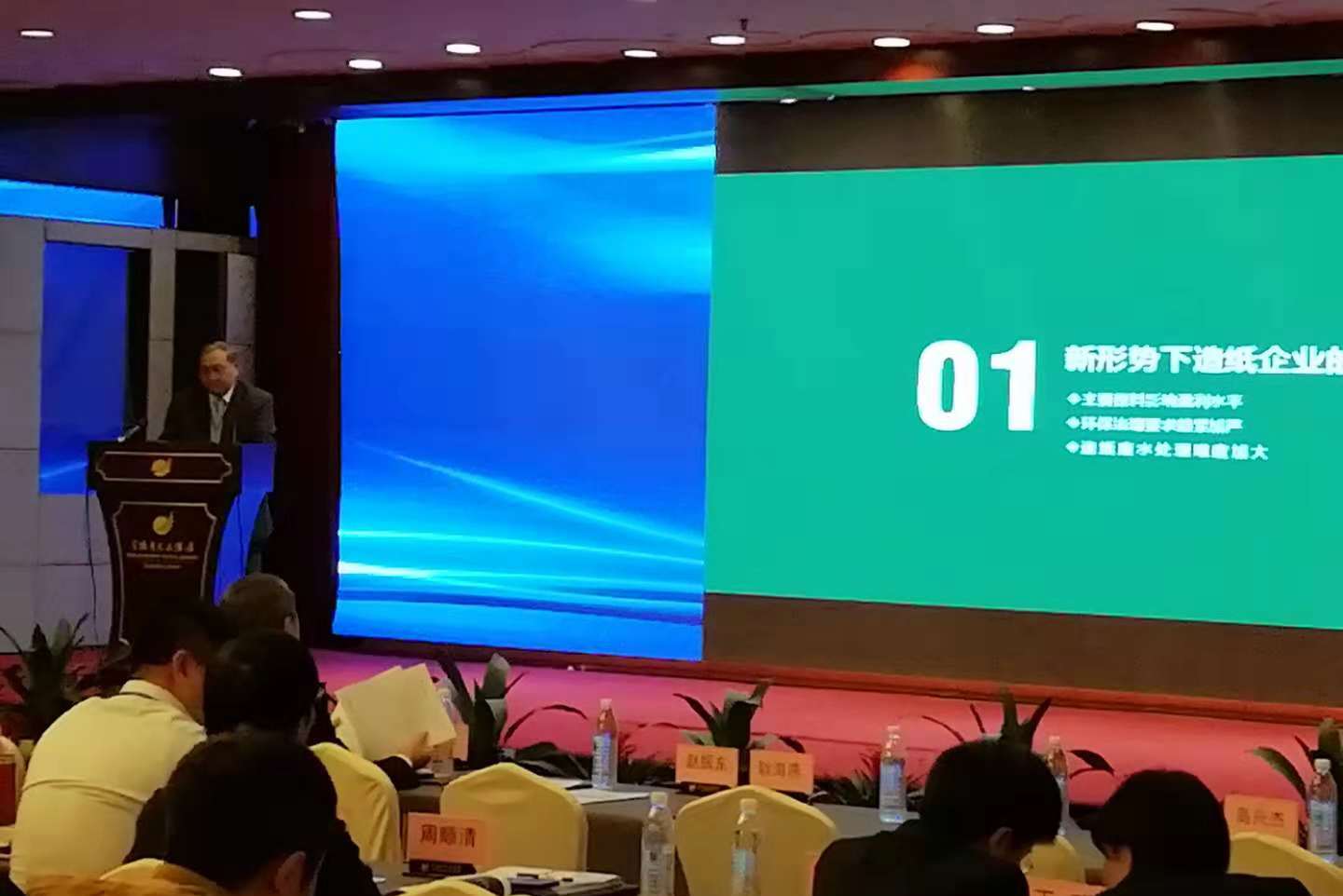 會議中,我公司董事長周煥祥研究員發(fā)表了“精準(zhǔn)施策 科學(xué)實現(xiàn)廢紙造紙廢水低成本運行”的主題演講,針對當(dāng)下造紙行業(yè)的痛點問題以及目前山東省排放標(biāo)準(zhǔn)提高對造紙企業(yè)廢水處理產(chǎn)生的影響等進行了立體、全面、深刻的剖析。針對這些問題,周總為業(yè)內(nèi)同仁分享了我公司近年來在造紙行業(yè)廢水處理領(lǐng)域的成功經(jīng)驗,提出了如何在利用現(xiàn)有設(shè)施的前提下,既能可靠達標(biāo),又能實現(xiàn)低投入、低成本運行的具體措施。周總的精彩發(fā)言受到了與會各位嘉賓、專家、造紙企業(yè)負(fù)責(zé)人的一致好評與肯定,紛紛表示希望與我公司有進一步的交流與合作。