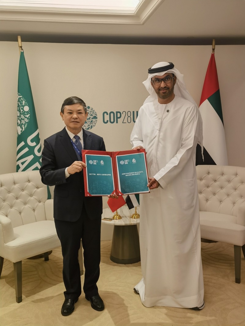 11月30日,《聯(lián)合國(guó)氣候變化框架公約》第二十八次締約方大會(huì)(COP28)“中國(guó)角”開(kāi)幕式暨“生態(tài)文明與美麗中國(guó)實(shí)踐”邊會(huì)在阿聯(lián)酋迪拜舉行。生態(tài)環(huán)境部部長(zhǎng)黃潤(rùn)秋出席開(kāi)幕式及邊會(huì)并致辭。中國(guó)氣候變化事務(wù)特使解振華,外交部原副部長(zhǎng)、聯(lián)合國(guó)前副秘書(shū)長(zhǎng)劉振民,COP28主席蘇爾坦等國(guó)內(nèi)外嘉賓出席。開(kāi)幕式由中國(guó)代表團(tuán)團(tuán)長(zhǎng)、生態(tài)環(huán)境部副部長(zhǎng)趙英民主持。